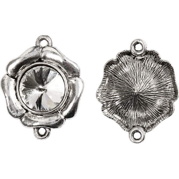 Anhänger mit Kristall, H 33 mm, Lochgröße 2 mm, 2 Stck., Antiksilber [HOB-63259]