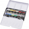 Hochpigmentierte Aquarellfarben in Top-Qualität - beeindruckende Farbeigenschaften und hohe Lichtechtheit - einfache Verarbeitung und gute Eignung für farbintensive sowie helle Aquarellarbeiten - Metallkasten mit Halbschalen.