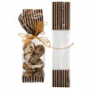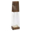 Our G1BNC side gusset bag measures 51 x 48 x 241 mm and has a brown with cream stripes print on the top and bottom of the bag. Fancy treats like candy, confections, chocolates, taffy, and more look right at home in this unique package. The center of the bag is crystal clear for a tempting view of your product. This bag is 40 micron thick and is made of laminated material for a high clarity presentation and exceptional durability. Printed gussets come open-ended and can be accessorized and closed with ribbons, bows, and twist ties. For a secure closure, this bag can be heat sealed with a standard hand sealer.