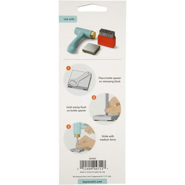 Kit with opener. Can be embossed with embossing tools. Ring for attachment included.