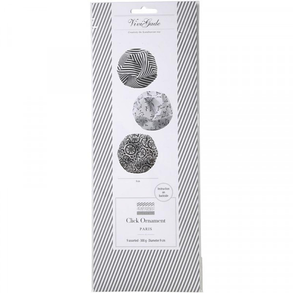 Click Ornaments, Größe 5,5x28,4 cm, D: 9 cm, 9 Sets [HOB-25123]