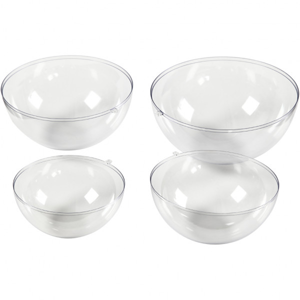 Shapes of transparent, hard plastic for casting semi-spherical bowls in concrete (and other castings that do not expand during curing).