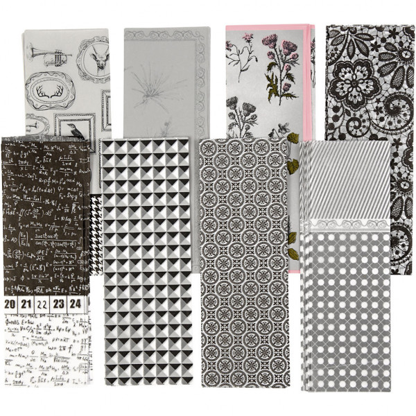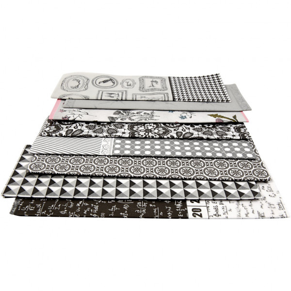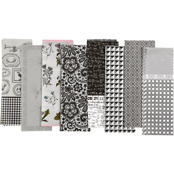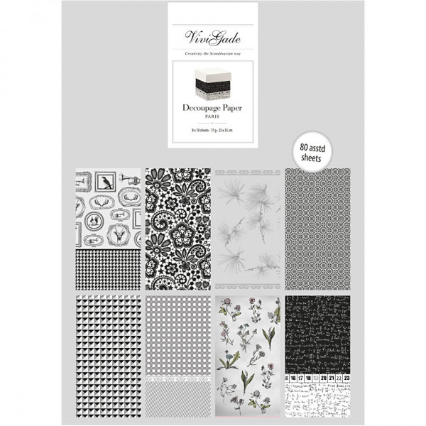 Sortiment von einseitig bedrucktem, halb-transparentem Decoupage-Papier aus der Vivi Gade Design Serie.