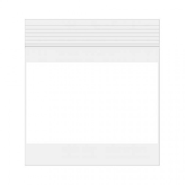 - Griffbeutel - kristallklare 50 mikron Beutel - versehen mit einer Weißen Schreibfläche - Preis pro Bündel von 100 Beuteln - Größe: 7,5x7,5 cm.