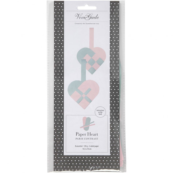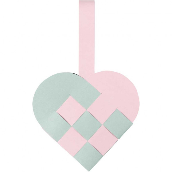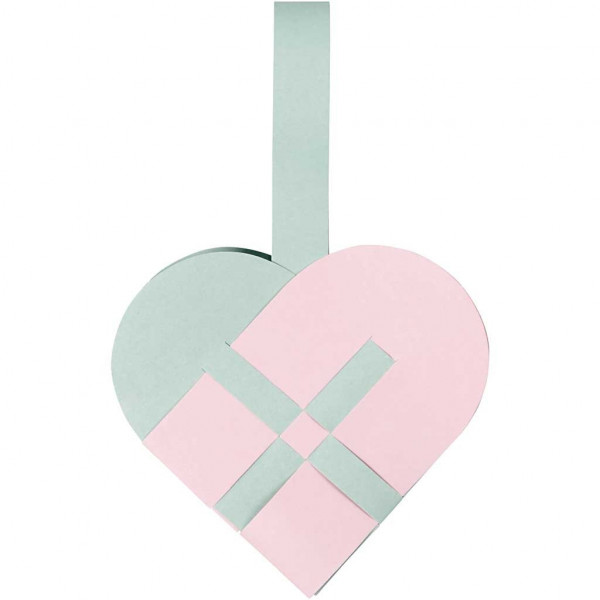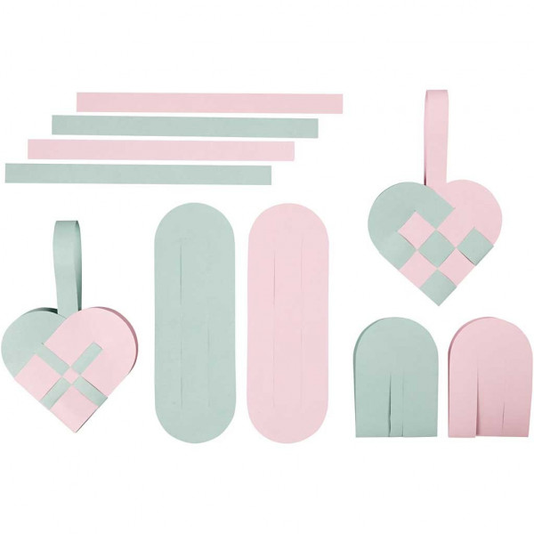 Inhalt: Flechtstreifen in 2 Farben, ausgestanzte Herz-Formen und 8 sortierte Henkel.