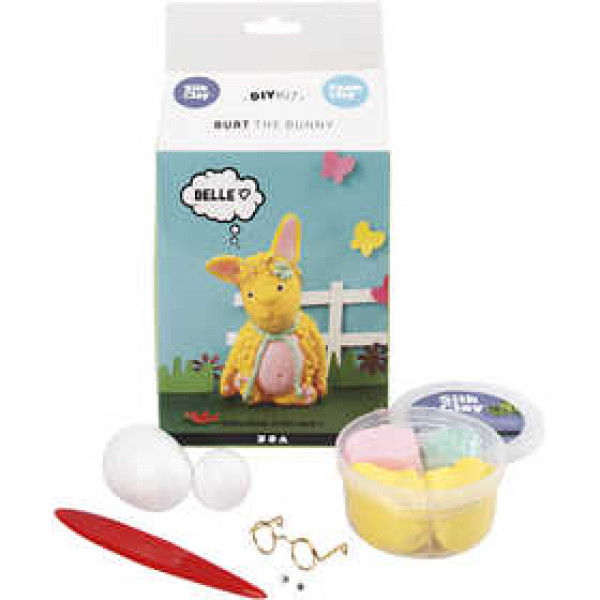 Material-Set für die Anfertigung einer lustigen Figur aus Silk Clay® und Foam Clay®.