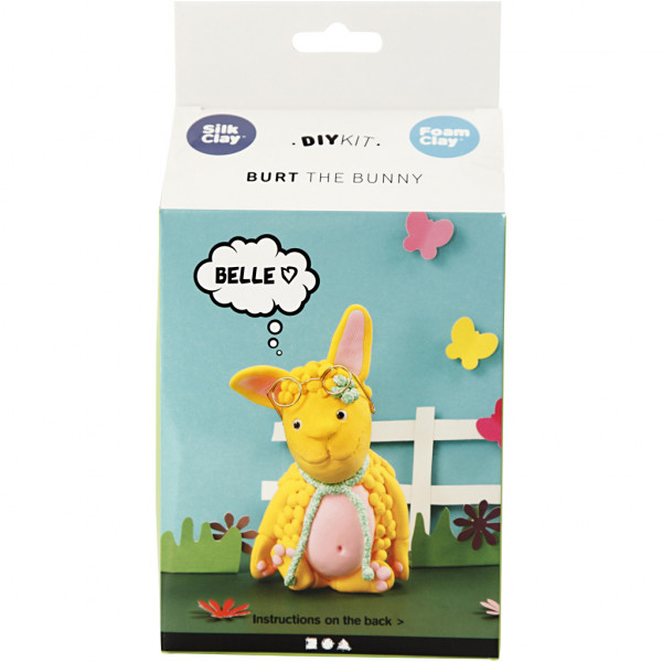 Inhalt: 2 Farben Silk Clay, 1 Farbe Foam Clay Glitter, 2 Styropor-Eier, Augen, Brille.