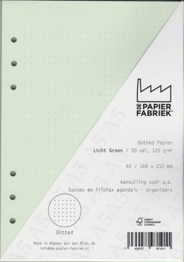 Zusatz A5 Briefpapier mit Succes, Filofax und Kalpa Tagebüchern / Planern - Format A5 - 50 Blatt (100 Seiten) - Dotted Hell Grün Papier - 120 g/m2. Preis ist per 50 Blatt