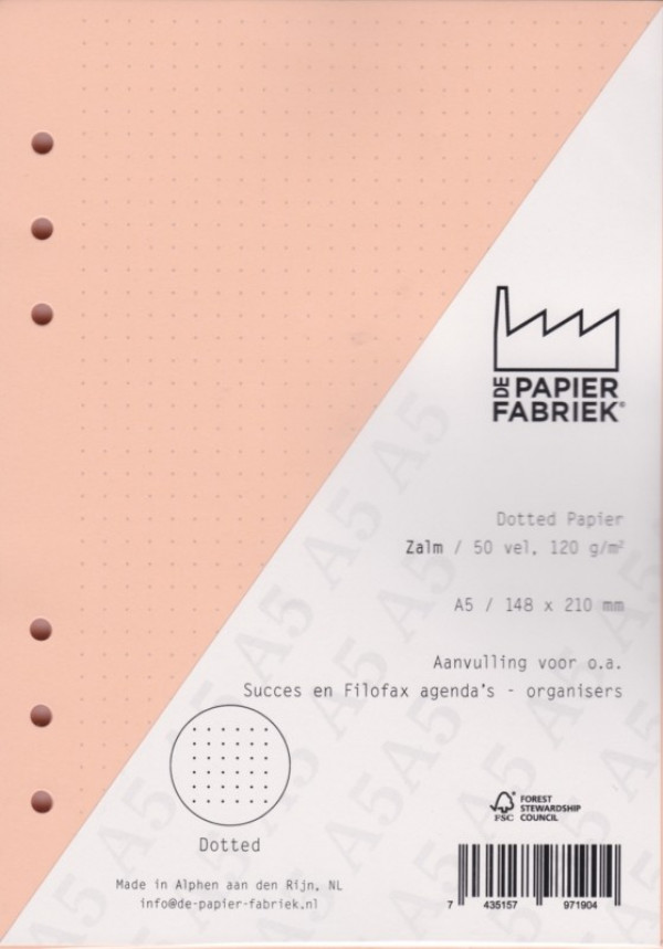 Zusatz A5 Briefpapier mit Succes, Filofax und Kalpa Tagebüchern / Planern - Format A5 - 50 Blatt (100 Seiten) - Dotted Lachs Gefarbt Papier - 120 g/m2. Preis ist per 50 Blatt