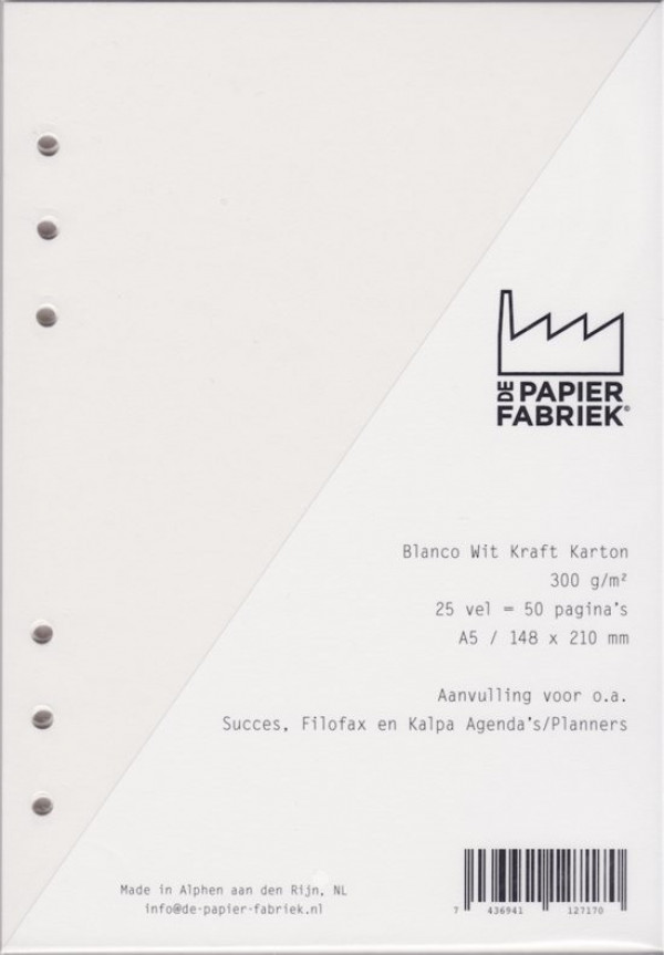 Zusatz A5 Notizpapier für Succes, Filofax und Kalpa Tagebücher / Planer 25 Blatt = 50 Seiten A5 Größe Kraft Weiss 300 g / m2 6-Loch-Karton. Der Preis gilt für 50 Blatt