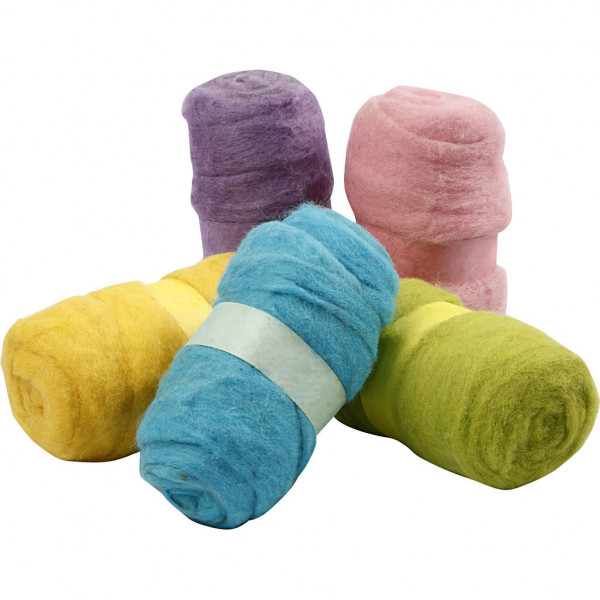 Kardierte Wolle, 5x100 g, Pastelltöne [HOB-45125]