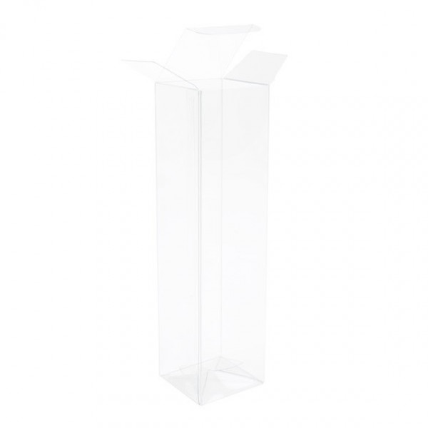 Create an upscale look for candies and favors with our Crystal Clear Pop & Lock Boxes. Our PLB336 box measures 52 x 52 x 206 mm and is a great choice for packaging chocolates, jelly beans, M&M's, malt balls, incense sticks, crafts, toys, and more. This box features our soft-folding design and an auto-locking bottom that pops into place, allowing an easy assembly. Made from high-density 300 micron PET, this box is FDA approved and provides an exceptional display for your product. Place (4) PLB104 boxes into PLB336 to create a "nesting" or "tower" look. Nesting packaging works great for showcasing a rainbow of colors, decorative candies, and gift sets.