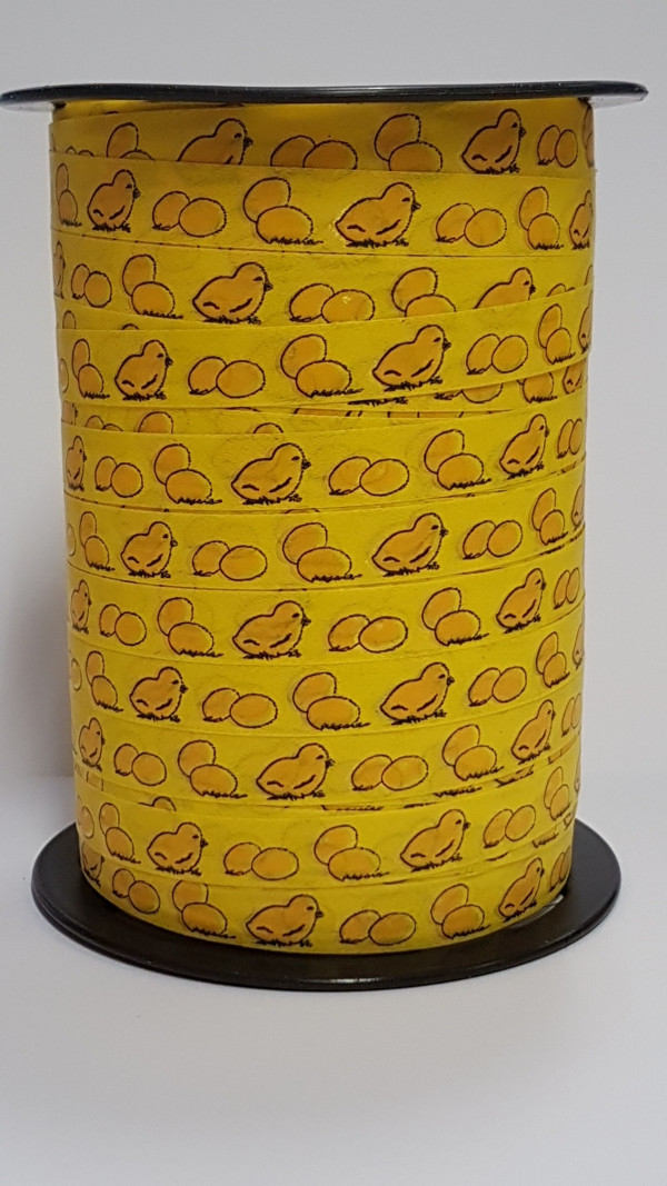 Kräuselband Osterküken Gelb mit Orange 10mm x 225 meter (1 Rolle) [HV-EAS10YO]