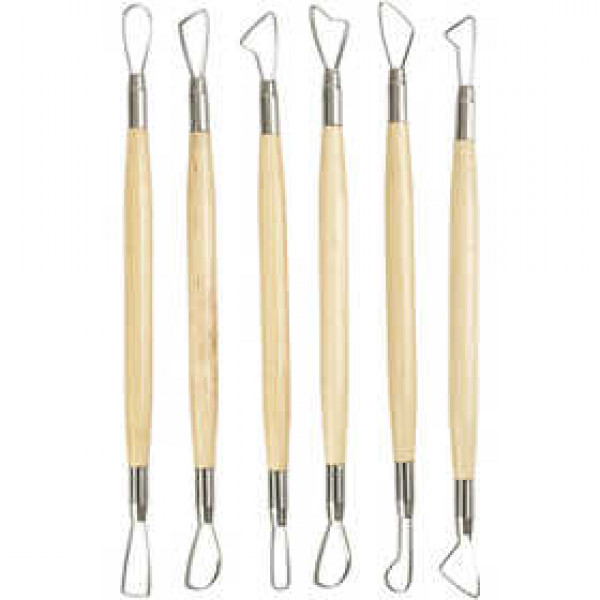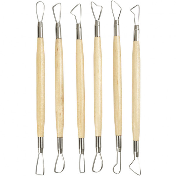 Vielseitige Auswahl an doppelseitigen Modellierschlingen mit Holzgriff.