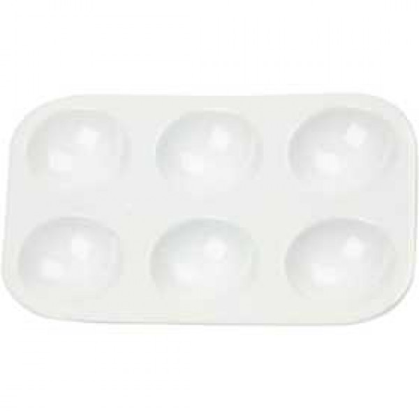 Rechteckige Palette aus Kunststoff mit 6 Vertiefungen.