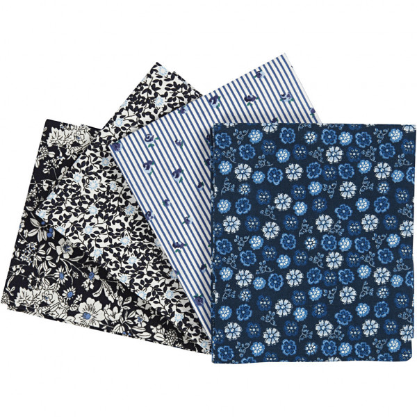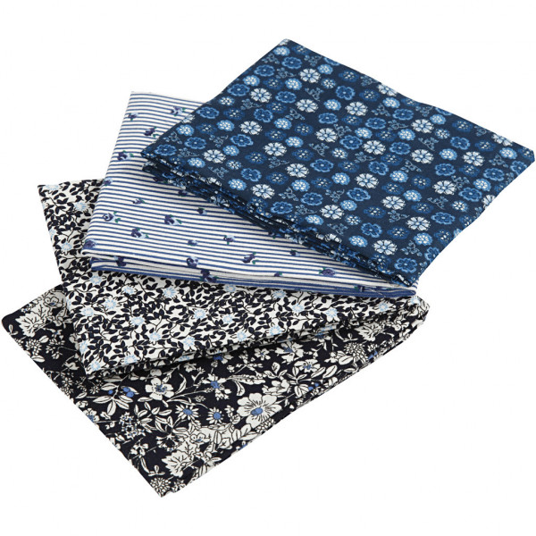 Patchwork-Stoff, Größe 45x55 cm, 100 g/qm, 4 Stck., Blau [HOB-44176]