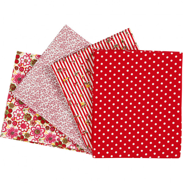 Patchwork-Stoff, Größe 45x55 cm, 100 g/qm, 4 Stck., Rot [HOB-44174]