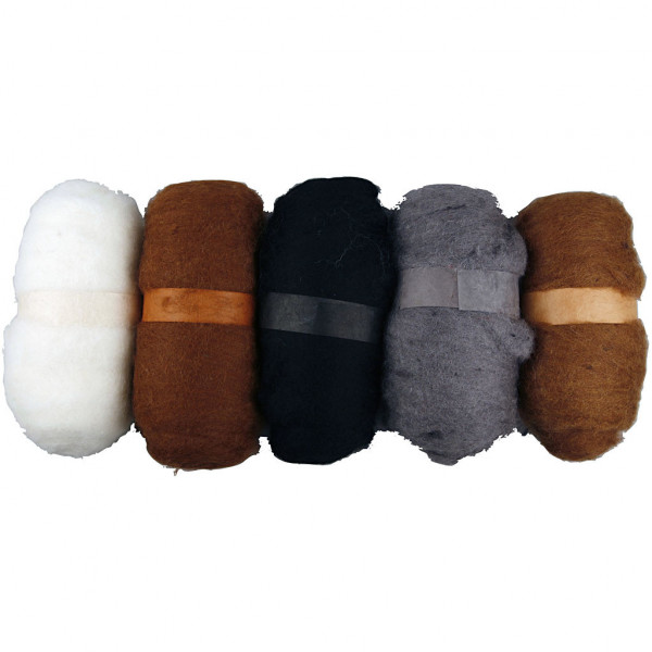 Kardierte Wolle, Naturtöne, 5x100g [HOB-45120]