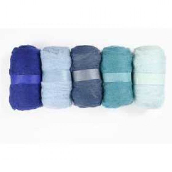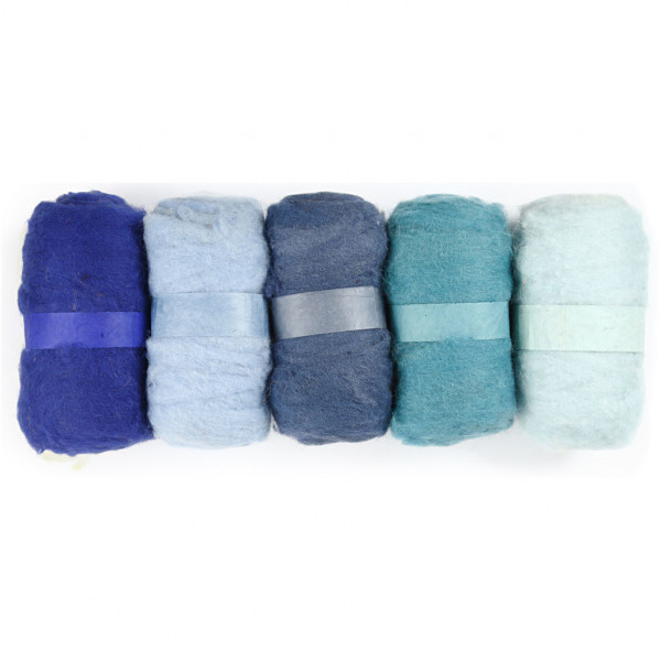 Kardierte Wolle, Blautöne, 5x100g [HOB-45123]