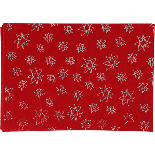 Bastelfilz, A4 21x30 cm, Stärke: 1 mm, Rot, Silberglitter-Design, 10Bl. [HOB-45381]