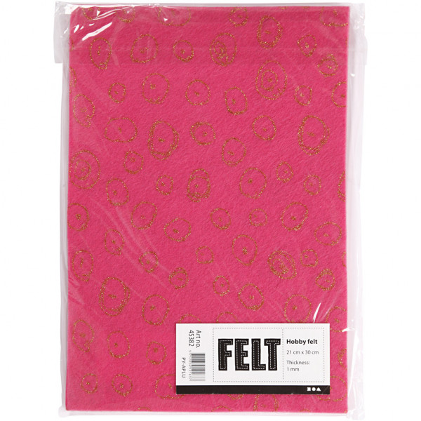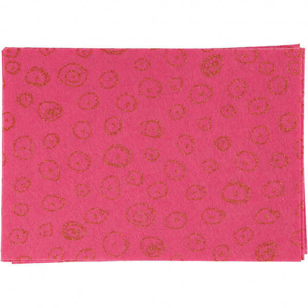 Bastelfilz, A4 21x30 cm, Stärke: 1 mm, Pink, Glitzer-Kreise in Orange, 10Bl. [HOB-45382]