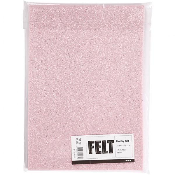 Bastelfilz, A4 21x30 cm, Stärke: 1 mm, Rosa, Silberglitter-Sprenkel, 10Bl. [HOB-45383]