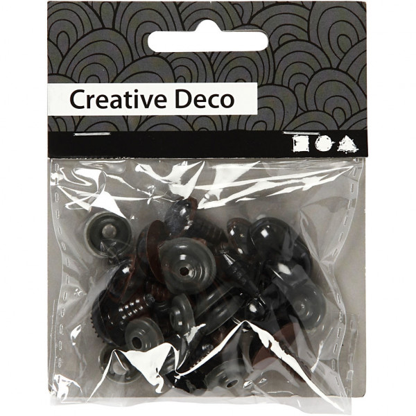 Teddybären-Augen und -Nasen - Sortiment, D: 10+12,5+15 mm, Größe 15+25 mm, 12sort. [HOB-500980]