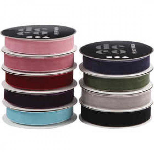 Samtband - Sortiment, B 15 mm, Sortierte Farben, 9x4m [HOB-51320]