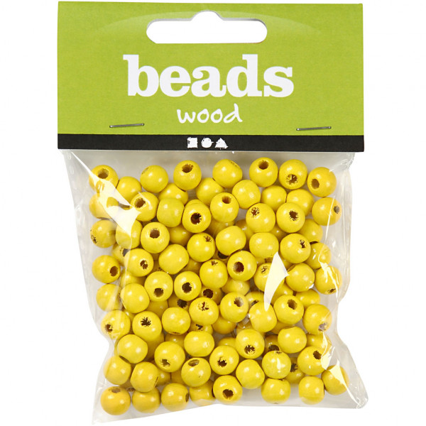 Holzperlen, D: 10 mm, Lochgröße 3 mm, Gelb, 20g, ca. 70 Stck [HOB-570593]