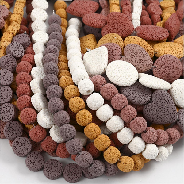 Lavaperlen-Mix, Größe 6-37 mm, Lochgröße 1+2 mm, 20 Strg., sortierte Farben [HOB-63588]
