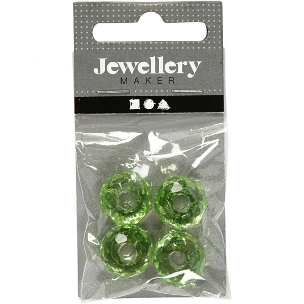 Glasperlen, Größe 9x14 mm, Lochgröße 4 mm, 4 Stck., Grün [HOB-68946]