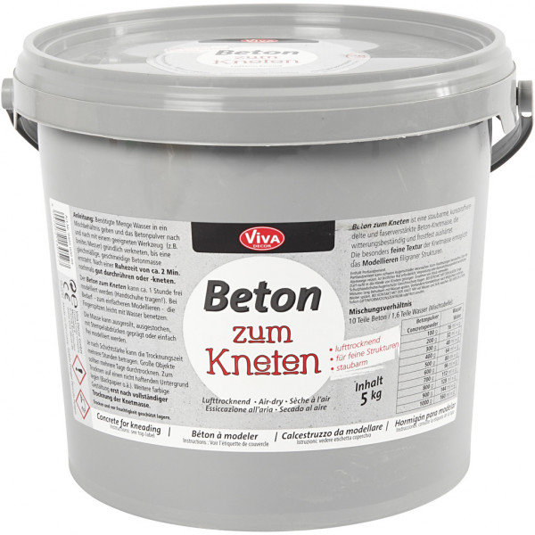 Lieferung in einem handlichen Plastikeimer mit Deckel und Griff. Mischverhältnis: 80 ml Wasser auf 500 g Pulver. Trockenzeit mind. 2 Stunden. Vollständig ausgehärtet nach 1-2 Tagen, je nach Dicke des Betons. Sollte in der Form aushärten.