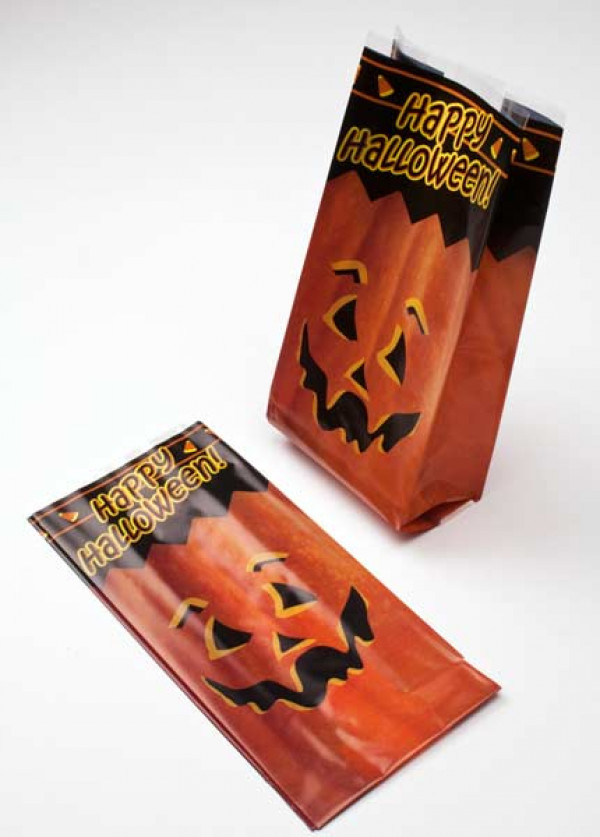 Bedruckte Beutel Halloween Kürbis 10,2x6,4x24,1cm mit Seitenfalten (100 Stück) [G4TGP]