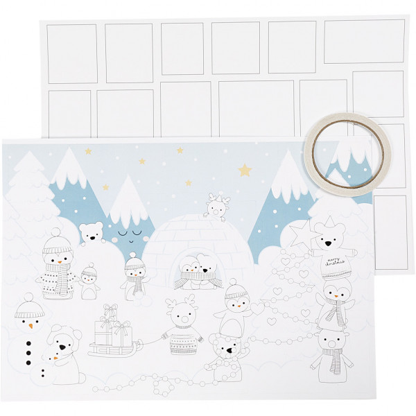 Adventskalender, mit Aufdruck, Größe 30x42 cm, Weiß, 3Stck. [HOB-23311]