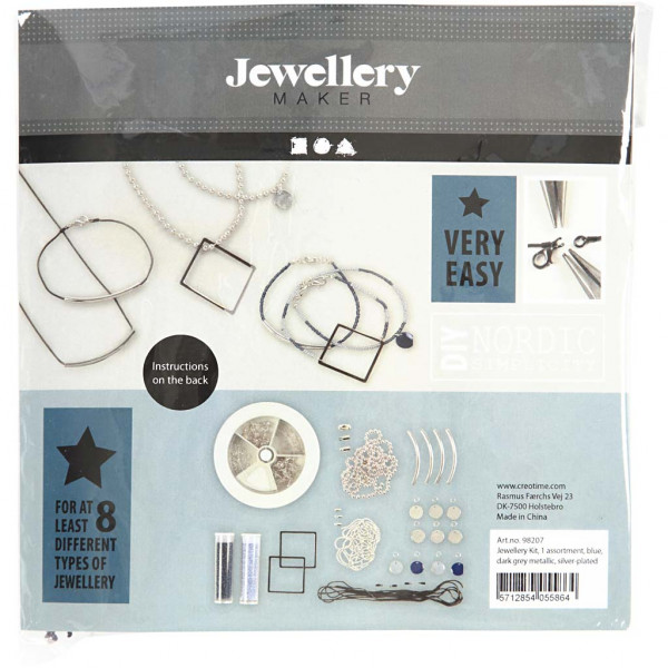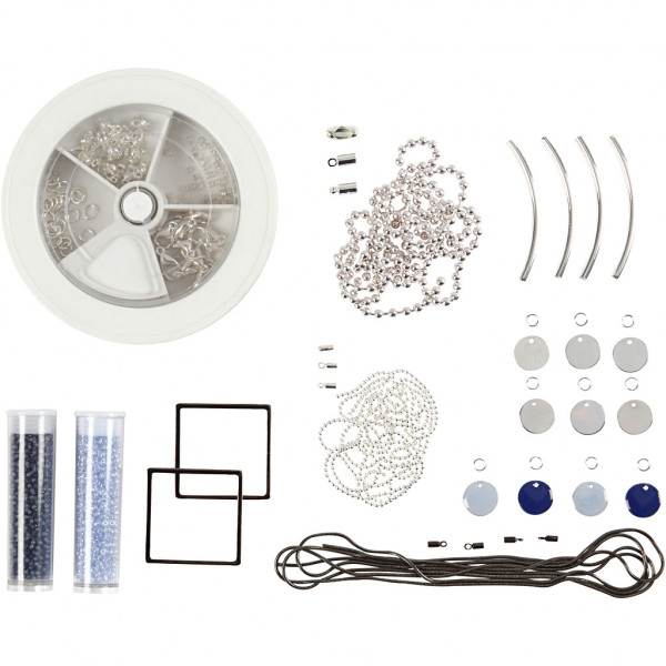 Schmuckset - Nordische Schlichtheit, 1 Sortmt., Blau, Metallic-Hellgrau, Versilbert [HOB-98207]