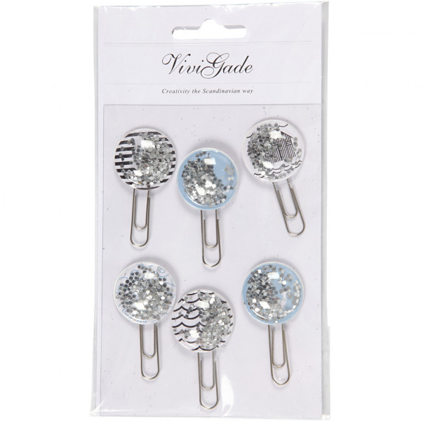 Silver-plated metal clip from Vivi Gade with round-mounted plastic decoration with loose circular arrows that can be shaken.