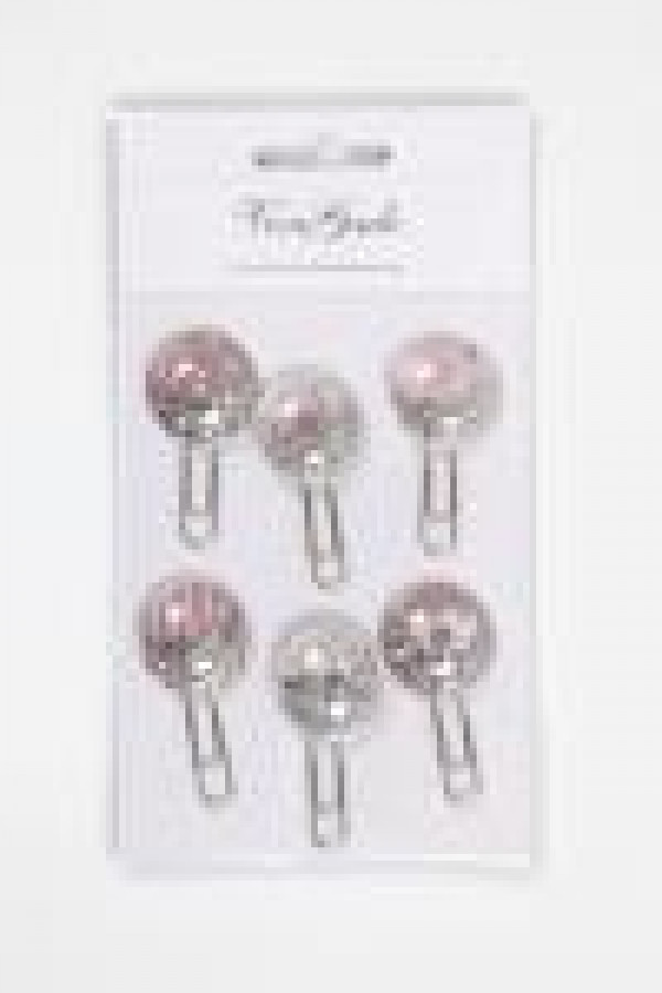 Silver-plated metal clip from Vivi Gade with round-mounted plastic decoration with loose circular arrows that can be shaken.