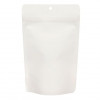 Your green packaging solution has arrived with this Eco Stand Up Zipper Pouch in White Kraft. Our ZBGEK3W pouch measures 13 x 7.9 x 20.6 cm and is ideal for 113 g of dry goods. This pouch is made of 65 gsm white kraft paper and includes a laminated inner lining made from plant-based PLA and an ALOX coating. At 125 micron thick, our white kraft pouch is extra durable and offers a resealable zipper to extend product freshness. Package tea, coffee, sea salts, snacks, candy, powdered mixes, and more. The self-supporting pouch includes tear notches and a round hang hole for the retail setting.