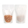 White rice paper zipper pouches offer a unique fiber pattern to entice customers. This ZBGR46WC pouch measures 119 x 76 x 184 mm and has a usable space of 102 x 57 x 149 mm. Ideal for dry goods, this pouch holds 114 g of products such as powdered mixes, chips, cookies, nuts, granola, and more. The material is laminated for extra strength and barrier to keep products fresh. Features include an airtight zipper closure and tear-away notches to conveniently access your product when the pouch is heat sealed. This pouch offers a high-end look for your product and is food safe.