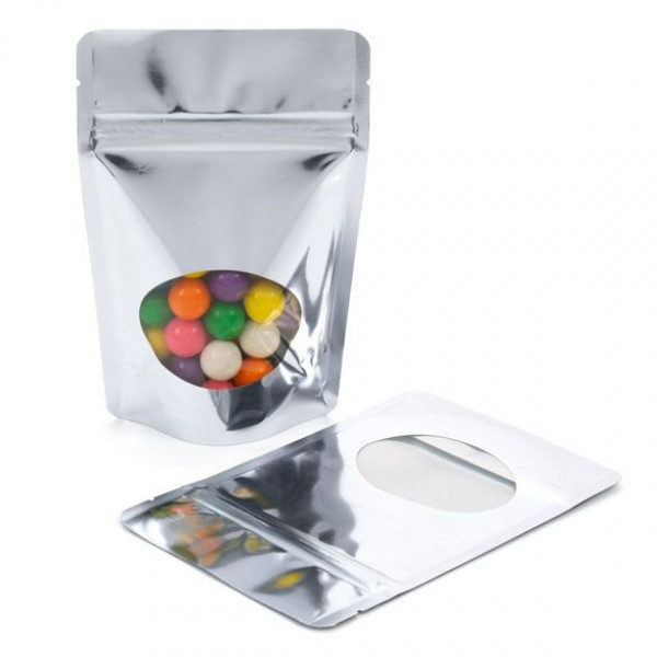 Metallized Zipper Pouch Bags with Oval Windows have the following features: