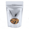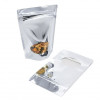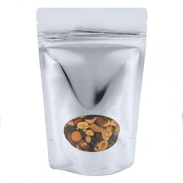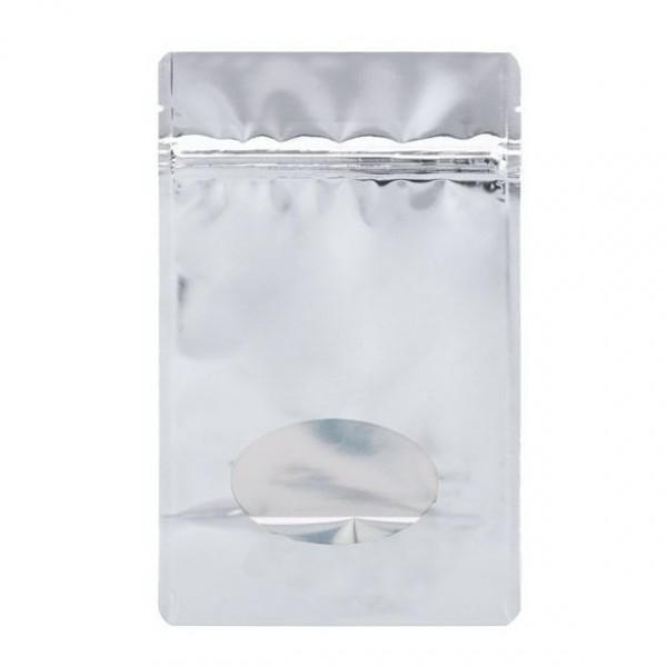 Standbodenbeutel Silber 13x7x20,5cm | 113 Gramm mit ovalem Fenster (100 Stück) [ZBGMO3S]