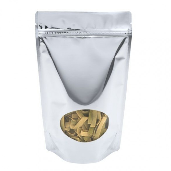 Metallized Zipper Pouch Bags with Oval Windows have the following features: