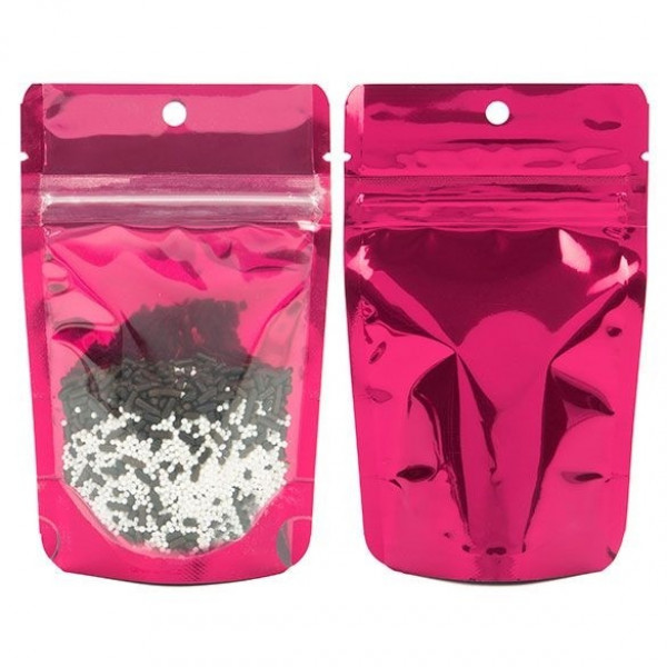 Standbodenbeutel Transparent/Fuchsia 7,9x5,1x13cm | 28 Gramm (100 Stück) [ZBGB1FS]