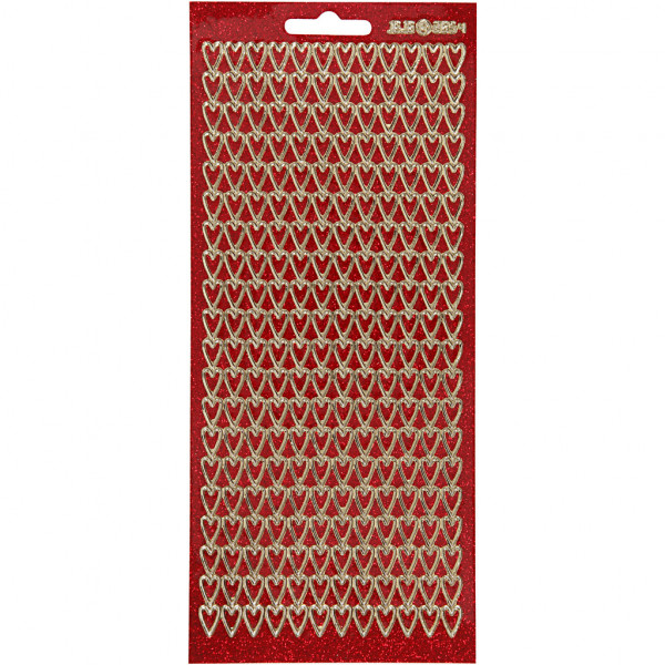 Sticker, Blatt 10x23 cm, Gold, Rot mit Glitter, Herzen, 1Bl. [HOB-170114]