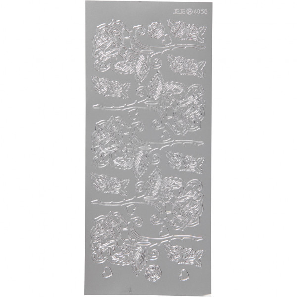 Sticker, Blatt 10x23 cm, Silber, Rosen, 1Bl. [HOB-170251]