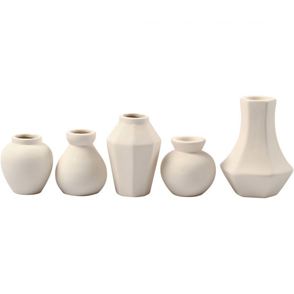 Vasen und Kerzenhalter, H 7+10+12 cm, Lochgröße 2,45 cm, 5 Stck., Weiß [HOB-50556]