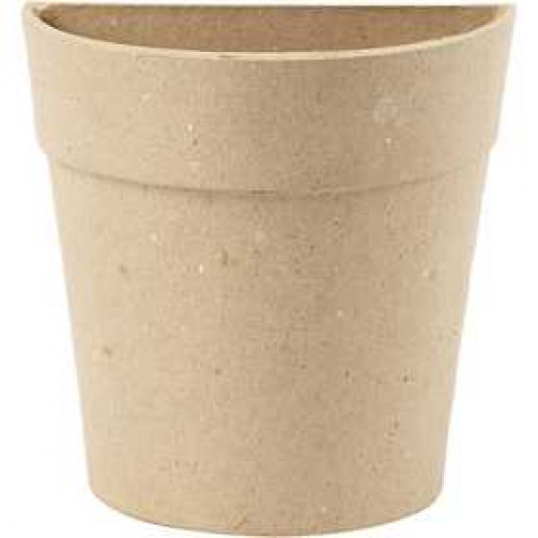 Handgefertigter Wand-Topf aus Pappmaché mit flachem Rücken.